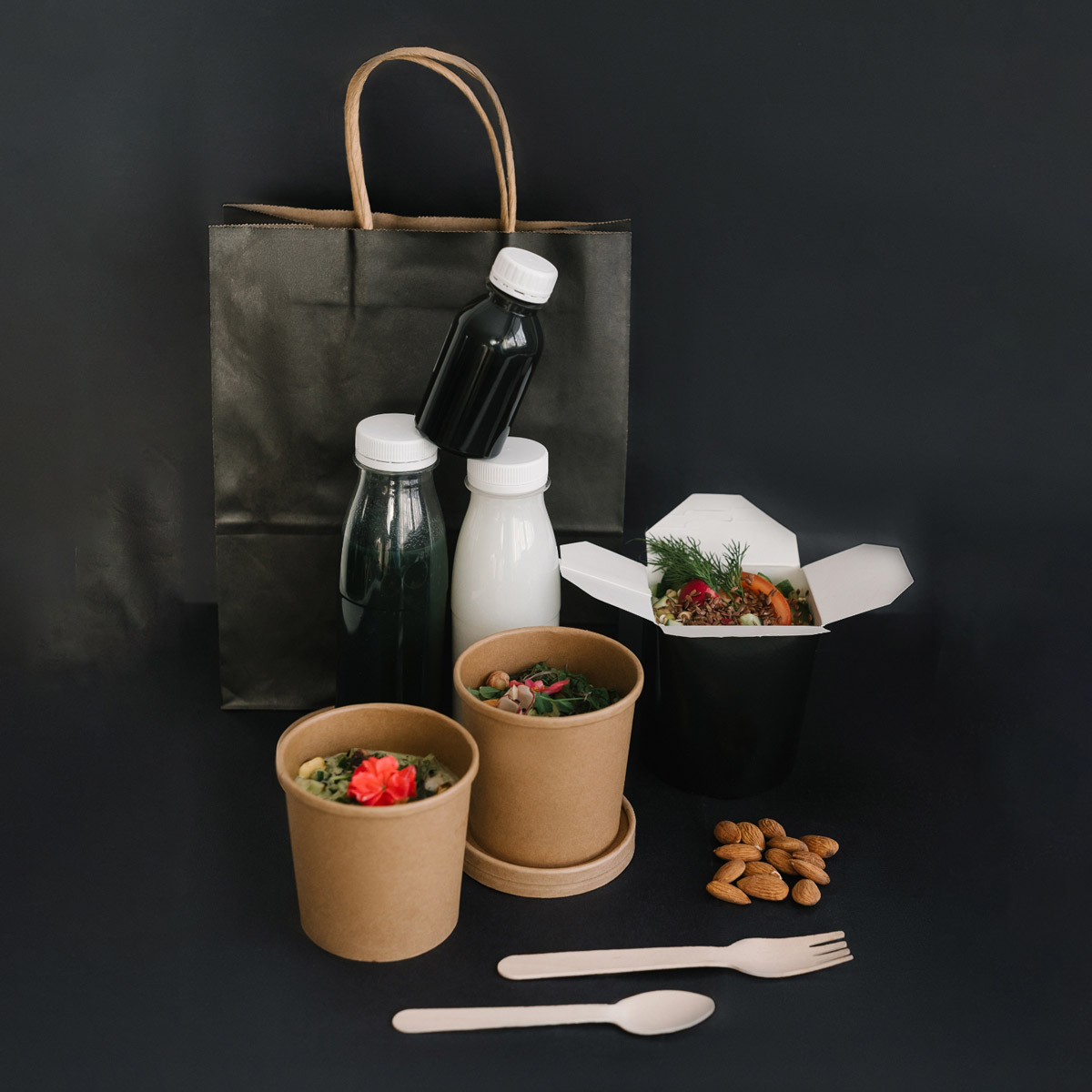 Contamos con una amplia variedad de empaques para el servicio de entrega como bolsas, popotes, vasos charolas, fajillas, etc. Todos elaborados con materiales 100 % reciclables